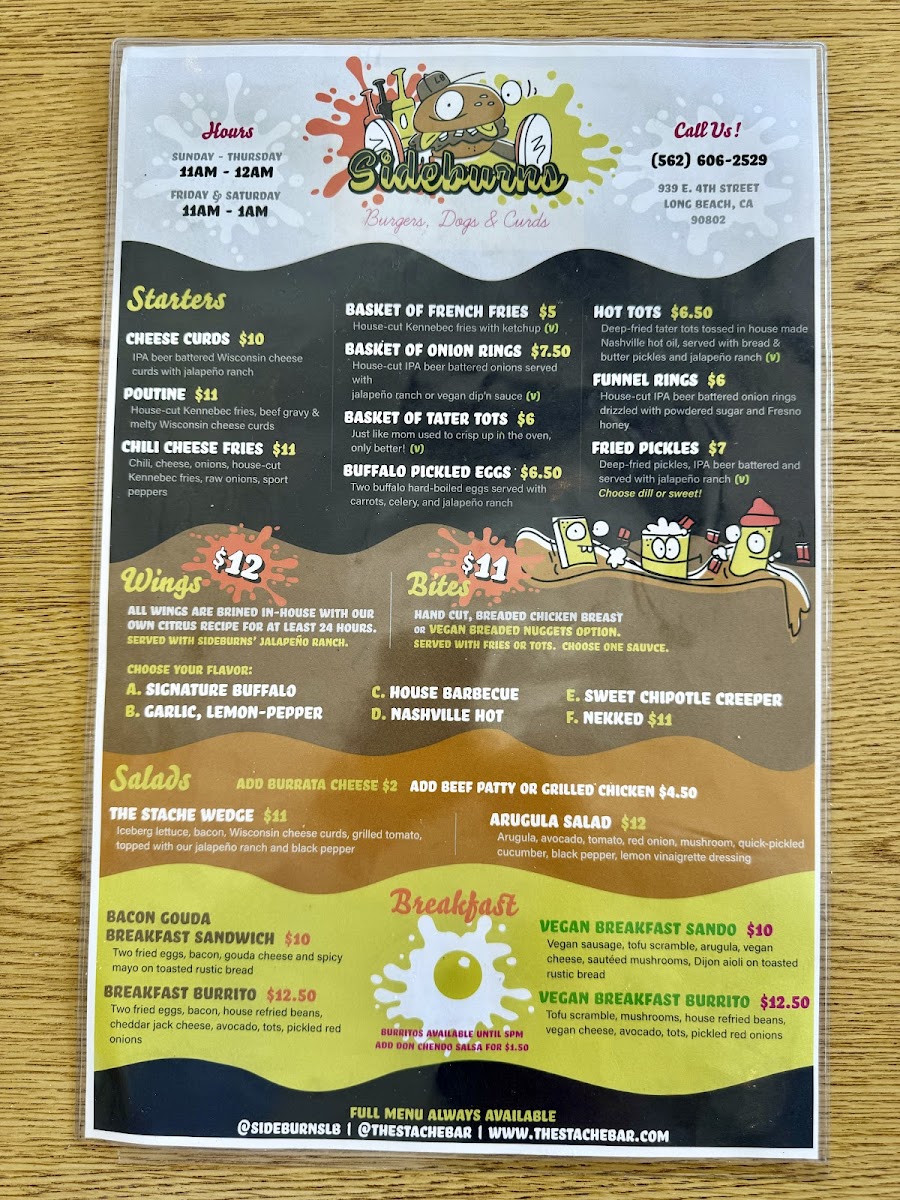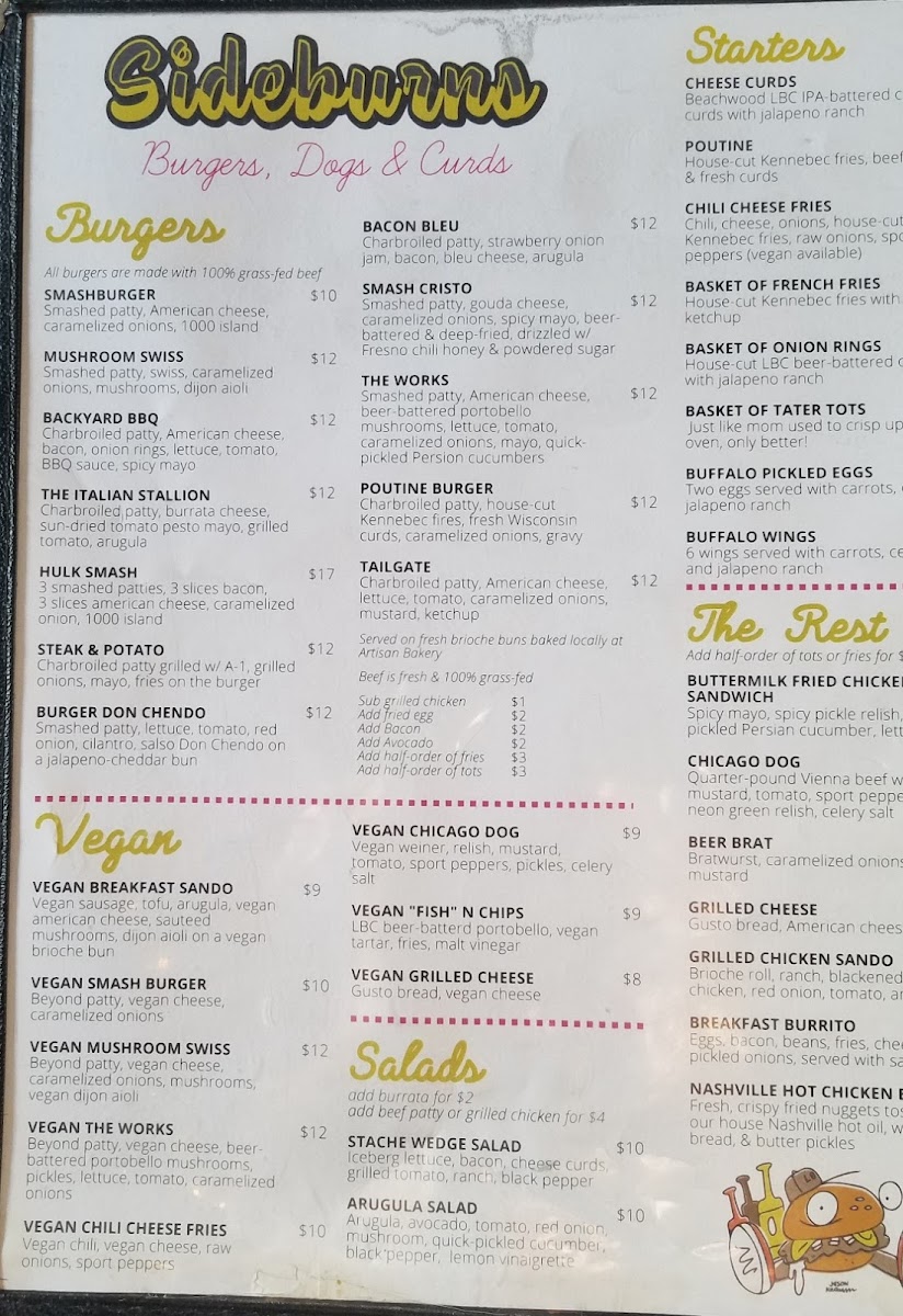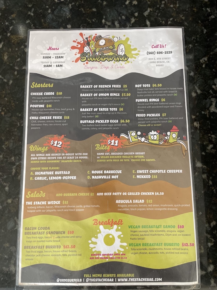Welcome to Sideburns, a hidden gem located at 939 E 4th St in Long Beach, CA. This unassuming eatery surprises with a delightful menu that satisfies every craving. Customers rave about their experience, with standout dishes including the Nashville hot chicken sandwich and the bacon blue burger, both crafted fresh and bursting with flavor.